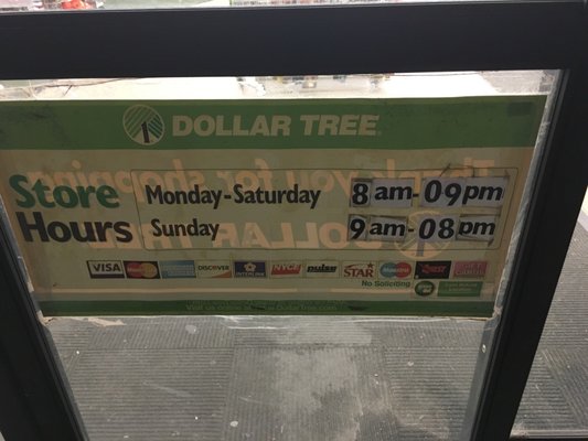 These hours are ideal. To 900 pm Monday through Sunday Dollar Tree personnel are available. They are not open every day though and do have.