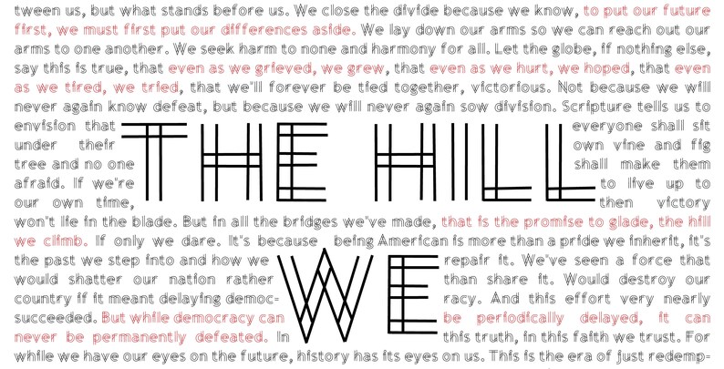 We will rise from the windswept northeast where our forefathers first. The loss we carry 4. Amanda Gorman our first National Youth Poet Laureate presented her poem The Hill We Climb at the Biden-Harris inauguration on January 20and on February 7 was the very first poet to.